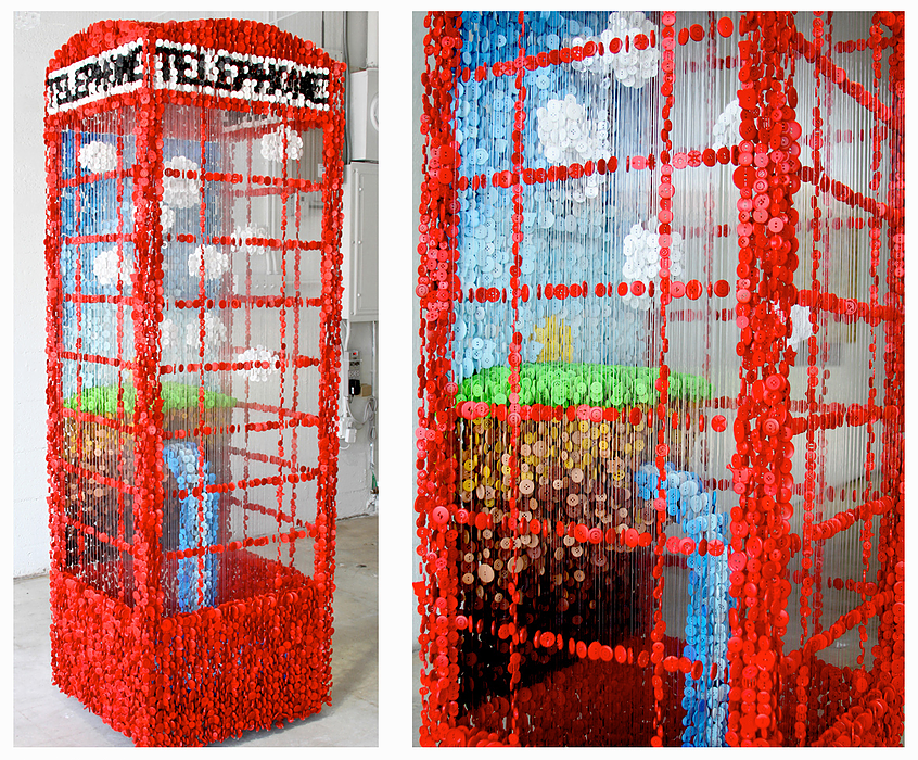 Именно с умом художник использует целые ящики и коробки цветных пуговиц, которые находит на чердаке.