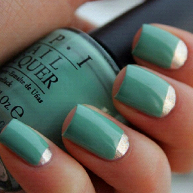 Тенденция 9. Зеленый маникюр на короткие ногти.